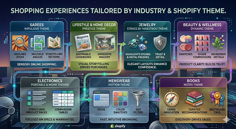 themes are built for a “one-size-fits-all” store — and your ecommerce store is anything but generic. Whether you sell sarees, jewelry, electronics, menswear, or books, your theme needs to match how your customers shop, compare, and buy.